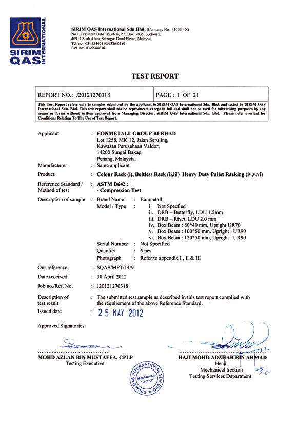 Sirim QAS International Test Report